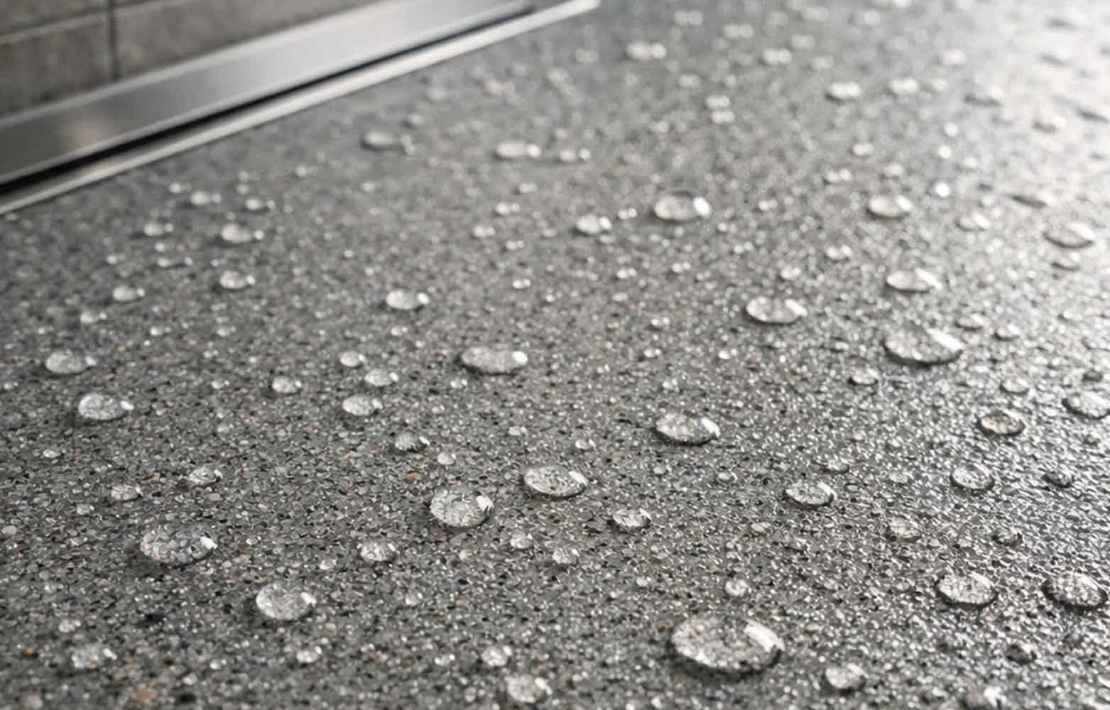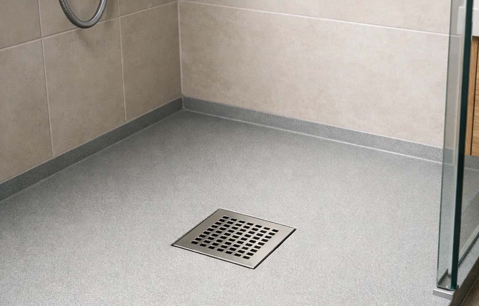 Reines Epoxidharz ist glatt und bei Nässe rutschig. Für den Duschboden ist daher eine rutschhemmende Ausführung zwingend notwendig.