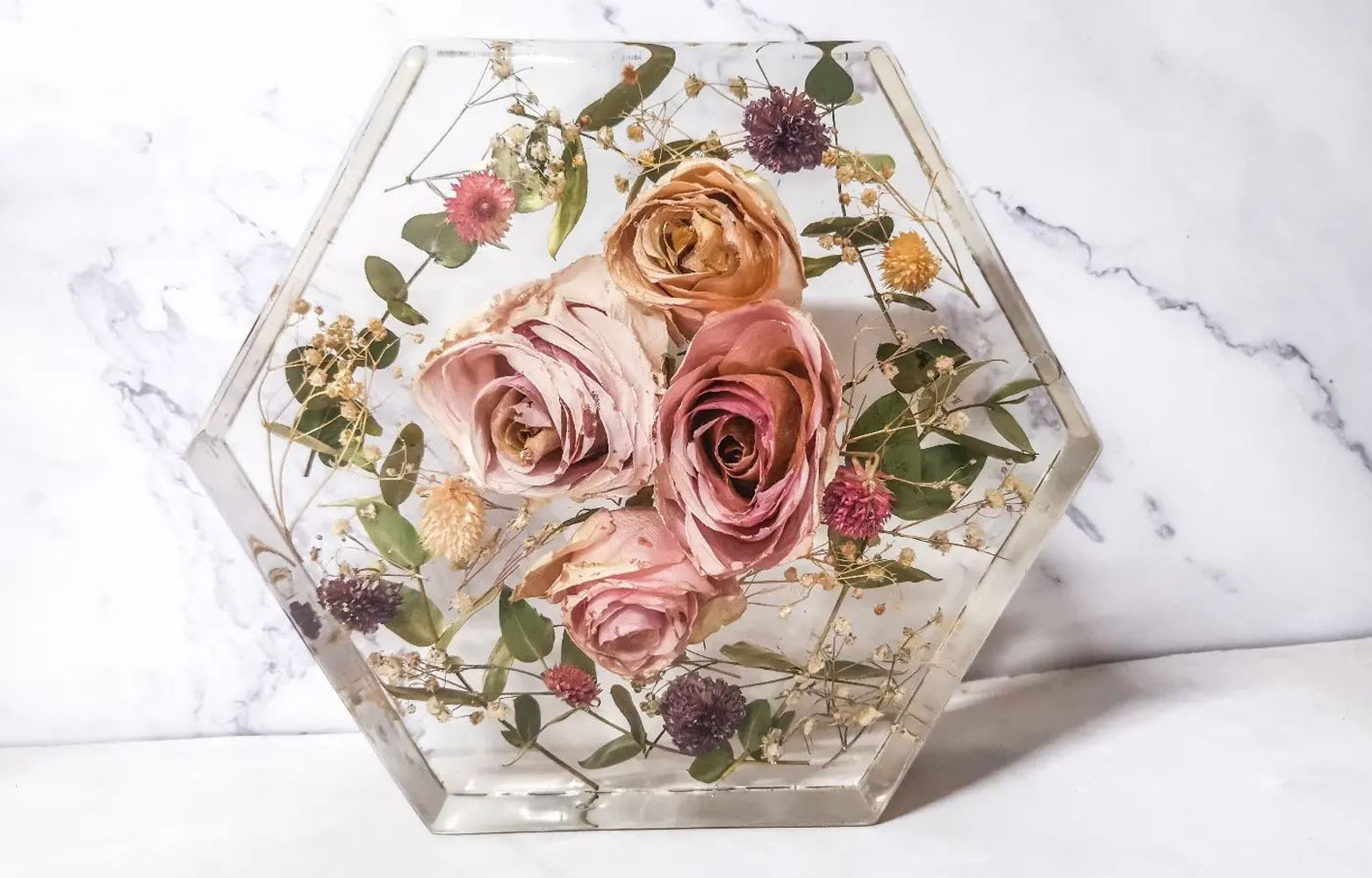 Richtig eingebettete Blumen können viele Jahre stabil bleiben, vorausgesetzt es wird ein hochwertiges Epoxidharz verwendet und das Objekt nicht dauerhaft direkter UV-Strahlung ausgesetzt.