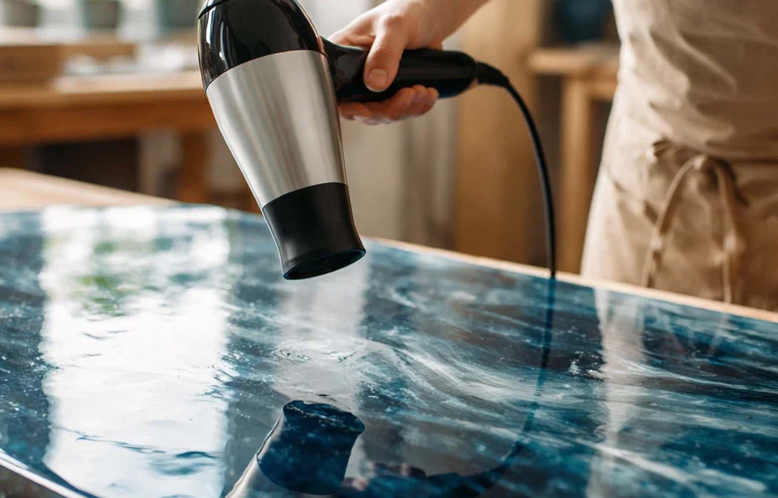 EpoxyHarz EpoxyTable 5: Ideal für Tische und Holz-Resin-Handwerk EpoxyTable 5 ist das meistverkaufte, kratzfeste und vergilbungsbeständige transparente Epoxidharz, perfekt für Gießanwendungen mit hoher Dicke bis zu 5 cm. Hauptanwendungen: Tische aus Holz und Harz: Ideal für Gießanwendungen mit hoher Dicke. Künstlerische und Designprojekte: Für Gießarbeiten in dickeren Schichten. Einbettung von Objekten: Wie Blumen, Münzen, Steine und mehr. Füllgüsse in Formen: Für Projekte, die größere Volumina erfordern. Hauptmerkmale: ✅ Extrem niedrige Exothermie für Gießanwendungen bis zu 5 cm Dicke (Mehrere Güsse im Abstand von 12-24 Stunden sind möglich).✅ UV-Filter: Schützt vor Vergilbung und bewahrt die Transparenz über die Zeit.✅ Hohe mechanische Festigkeit: Für langlebige und kratzfeste Oberflächen.✅ Niedrige Viskosität: Minimiert Luftblasen und sorgt für perfekte Transparenz.✅ Lange Arbeitszeit: Ideal für komplexe oder detaillierte Projekte. Farbgestaltung: Das Harz ist kristallklar und kann mit jedem Epoxidfarbstoff (Pasten oder Pulver) von 0,1% bis 2,0% eingefärbt werden. Nicht empfohlen: Acryl- oder wasserbasierte Farbstoffe. Wichtige technische Daten: Mischverhältnis: 100:55 (nach Gewicht). Aushärtungszeit: 24 Stunden, vollständige Aushärtung nach 48 Stunden. Maximale Gießstärke: Bis zu 5 cm (mehrere Güsse im Abstand von 12-24 Stunden möglich). Einsatztemperatur: +10°C bis +30°C. Spesifikationen je nach Temperatur: 15°-20°C: Max. Gewicht pro Anwendung: 10 kg Max. Gießbreite: ≤10 cm, Max. Gießhöhe: 5 cm 10 cm bis ≤20 cm: max. 4 cm 20 cm: max. 3,5 cm 20°-25°C: Max. Gewicht pro Anwendung: 16 kg Max. Gießbreite: ≤10 cm, Max. Gießhöhe: 4 cm 10 cm bis ≤20 cm: max. 3,2 cm 20 cm: max. 2,8 cm 25°-30°C: Max. Gewicht pro Anwendung: 20 kg Max. Gießbreite: ≤10 cm, Max. Gießhöhe: 3 cm 10 cm bis ≤20 cm: max. 2,4 cm 20 cm: max. 2,1 cm Weitere Details:Bevor du das Produkt anwendest, konsultiere die spezifischen Anweisungen und Sicherheitsvorschriften. Jetzt kaufen und profitiere von der perfekten Gießlösung für deine kreativen Projekte mit EpoxyTable 5!