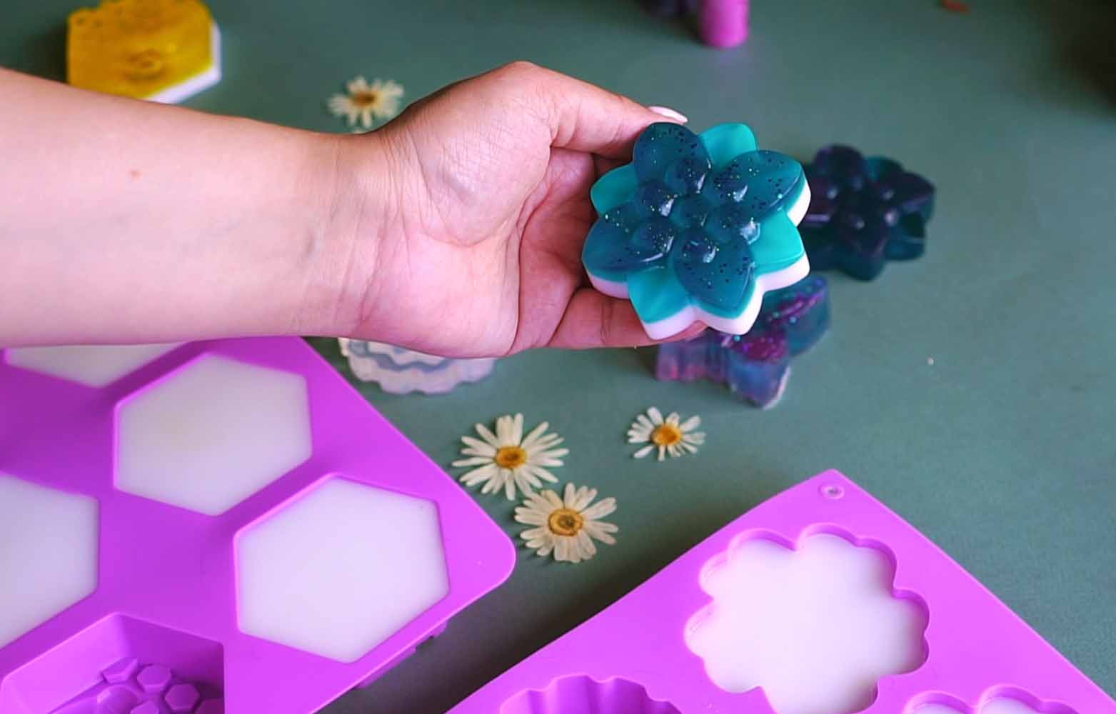 Seifen mit hohem Olivenölanteil benötigen meist länger zum Aushärten, während kleinere Formen schneller trocknen.