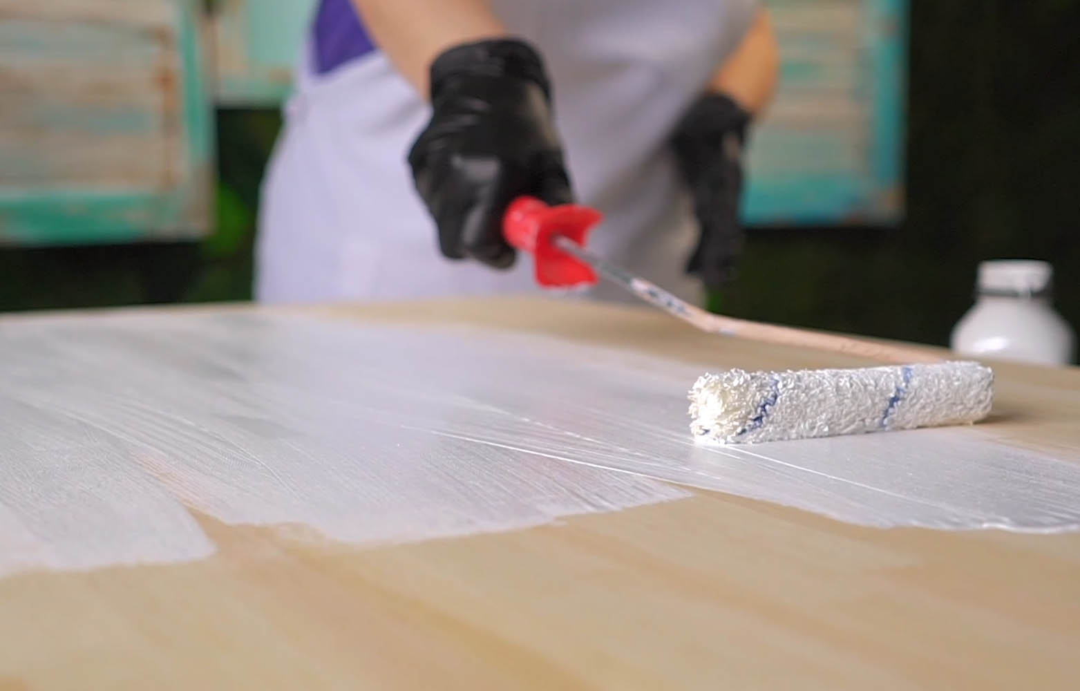 Das Reparaturharz wird gemäß Herstellerangaben exakt gemischt. Anschließend wird es dünn und gleichmäßig auf die beschädigte Stelle aufgetragen, idealerweise mit Spachtel oder Pinsel.