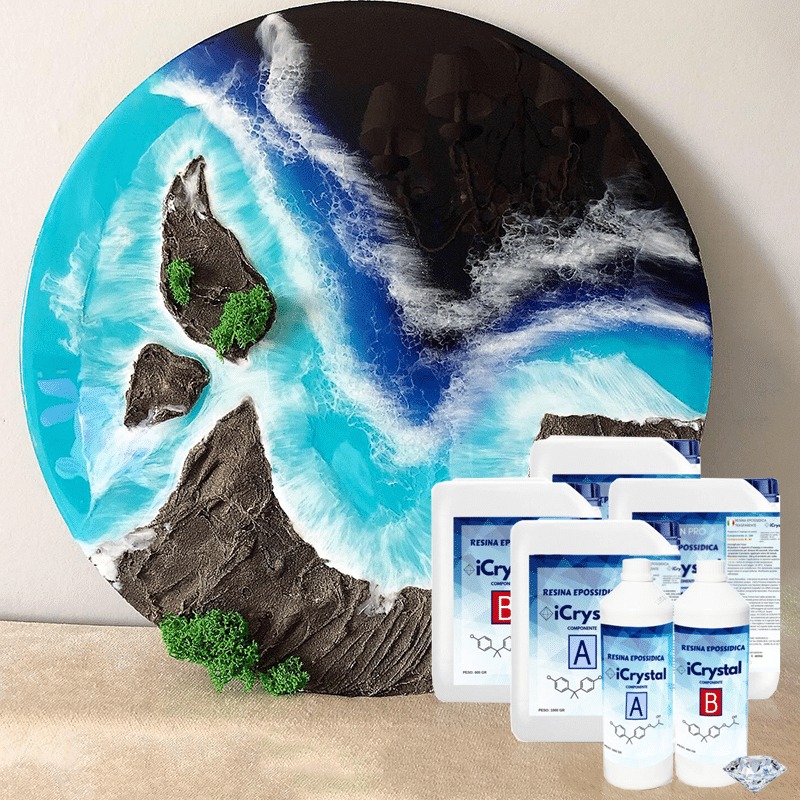 iCrystal bietet eine außergewöhnliche Klarheit, perfekt für künstlerische Arbeiten, die ein makelloses Finish erfordern. Es ist ideal für die Herstellung von Schmuck, Harztischen und Dekorationen, die im Licht glänzen.